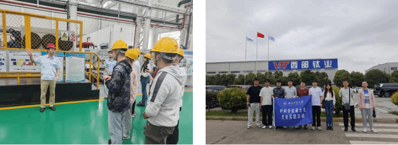 在西部钛业,校外行业导师、高级工程师杨亚社为同学们进行了安全教育培训,并带领大家参观钛材生产车间、检测中心和中试生产线,深入了解公司在产品质量控制、工艺创新及工程应用转化等方面的实际做法与典型经验。同学们围绕关键技术环节与现场技术人员进行互动交流。