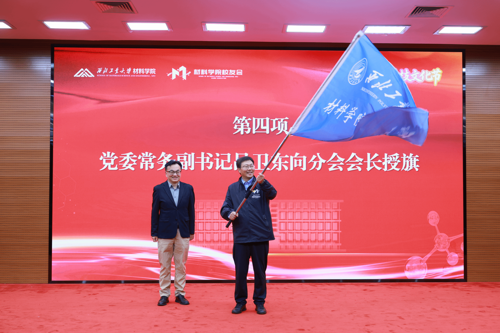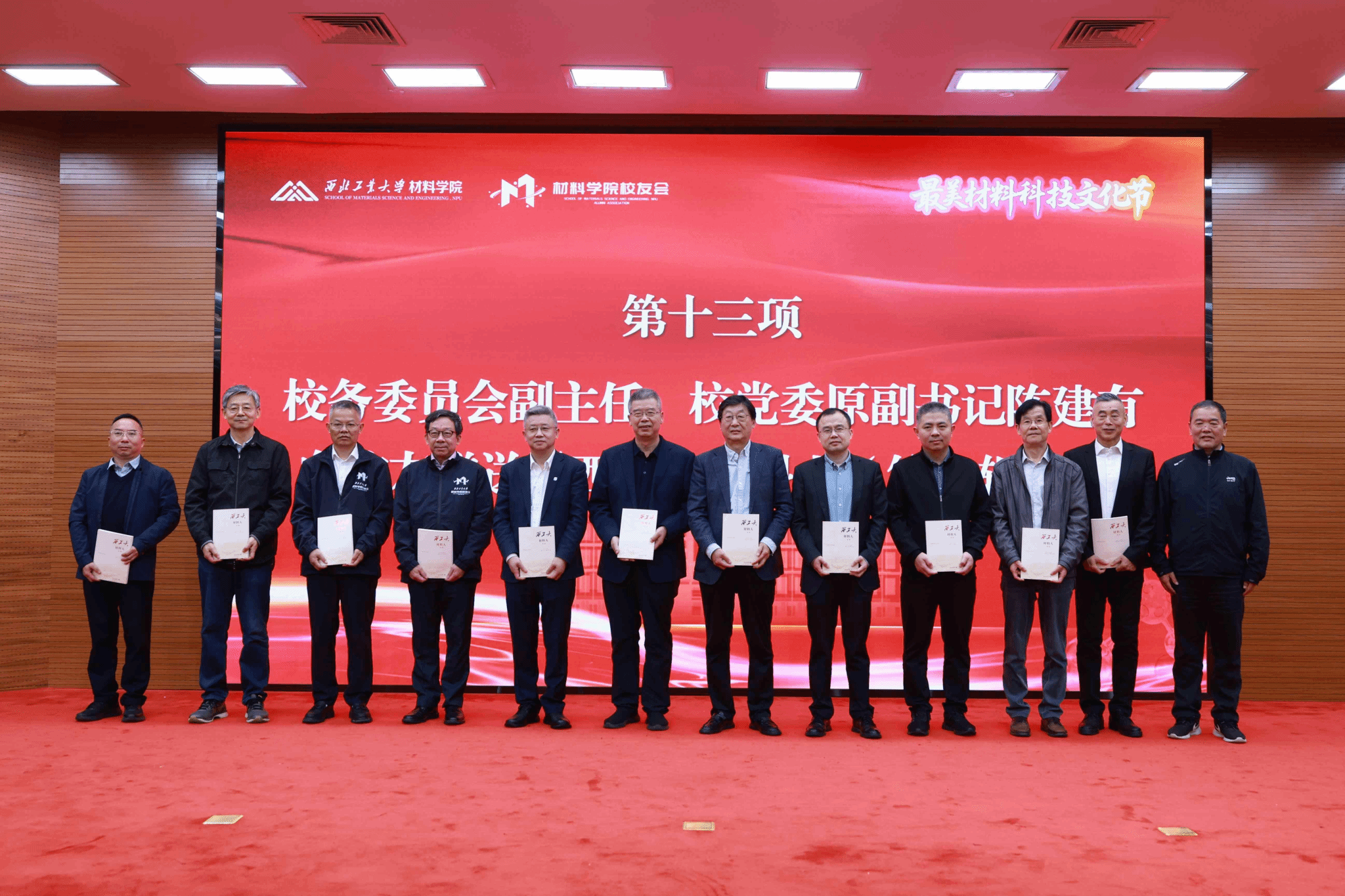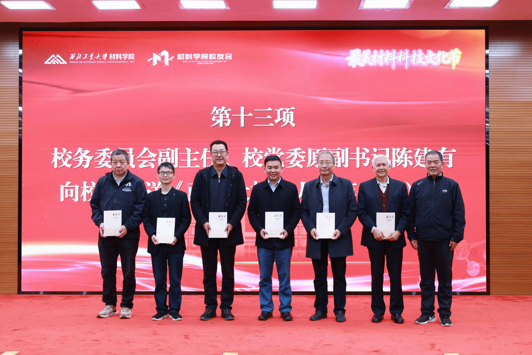 陈建有向校友和教师代表赠送《西工大材料人(第一辑)》,弘扬西工大材料人精神。