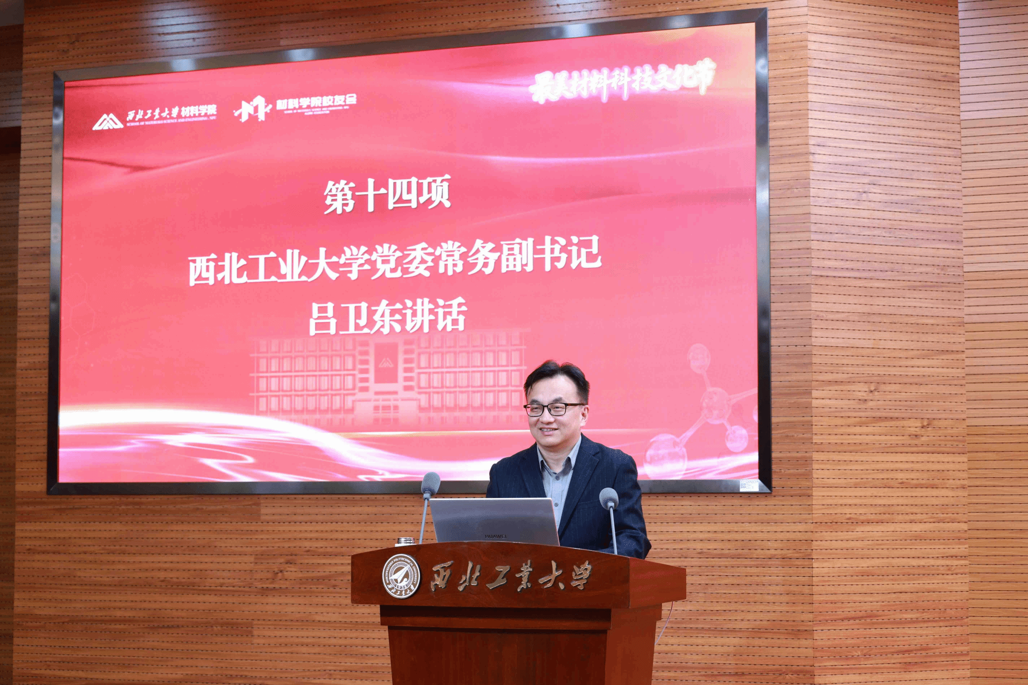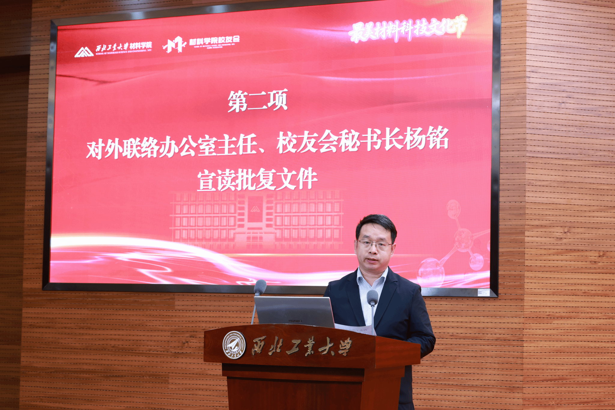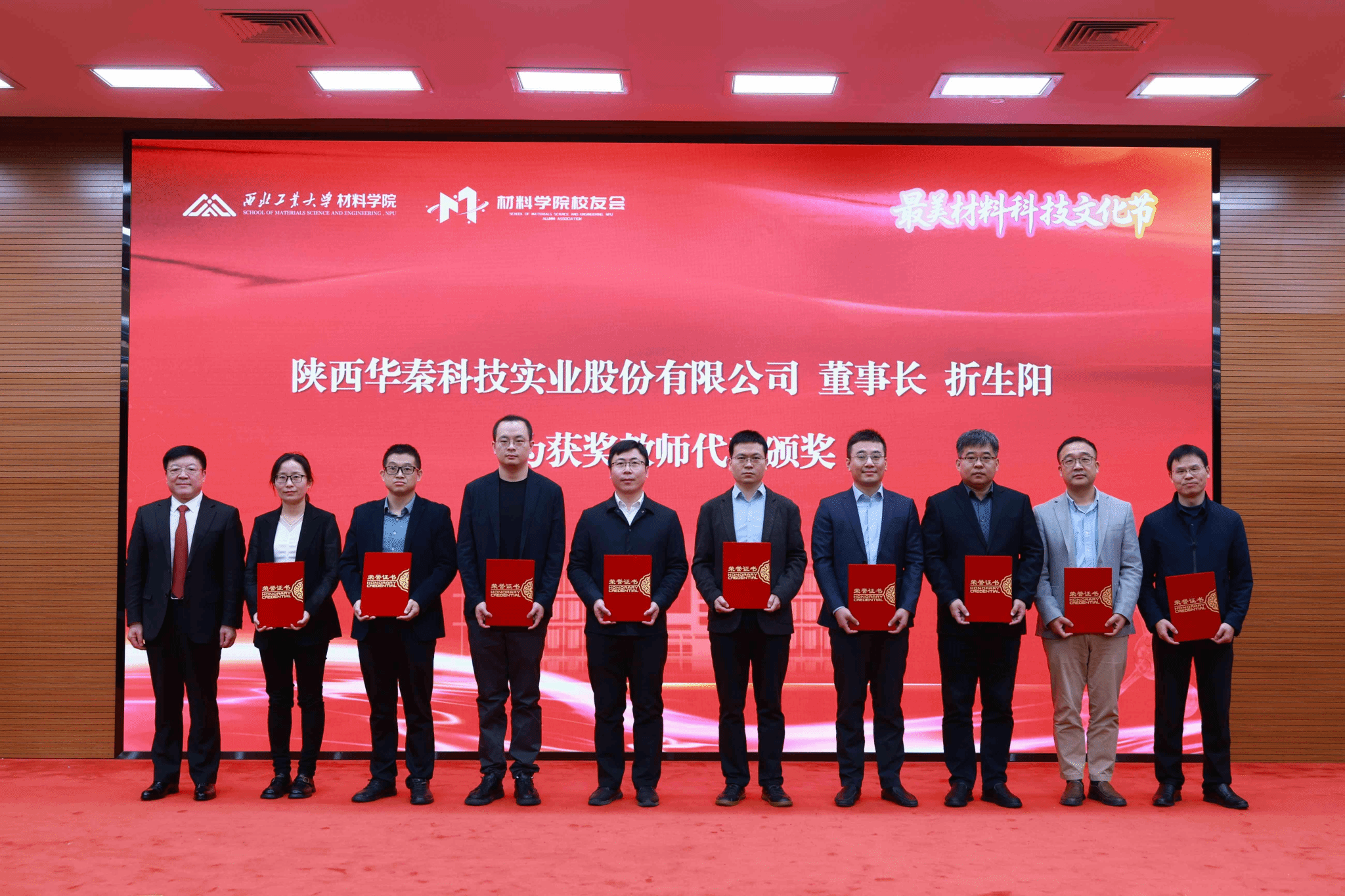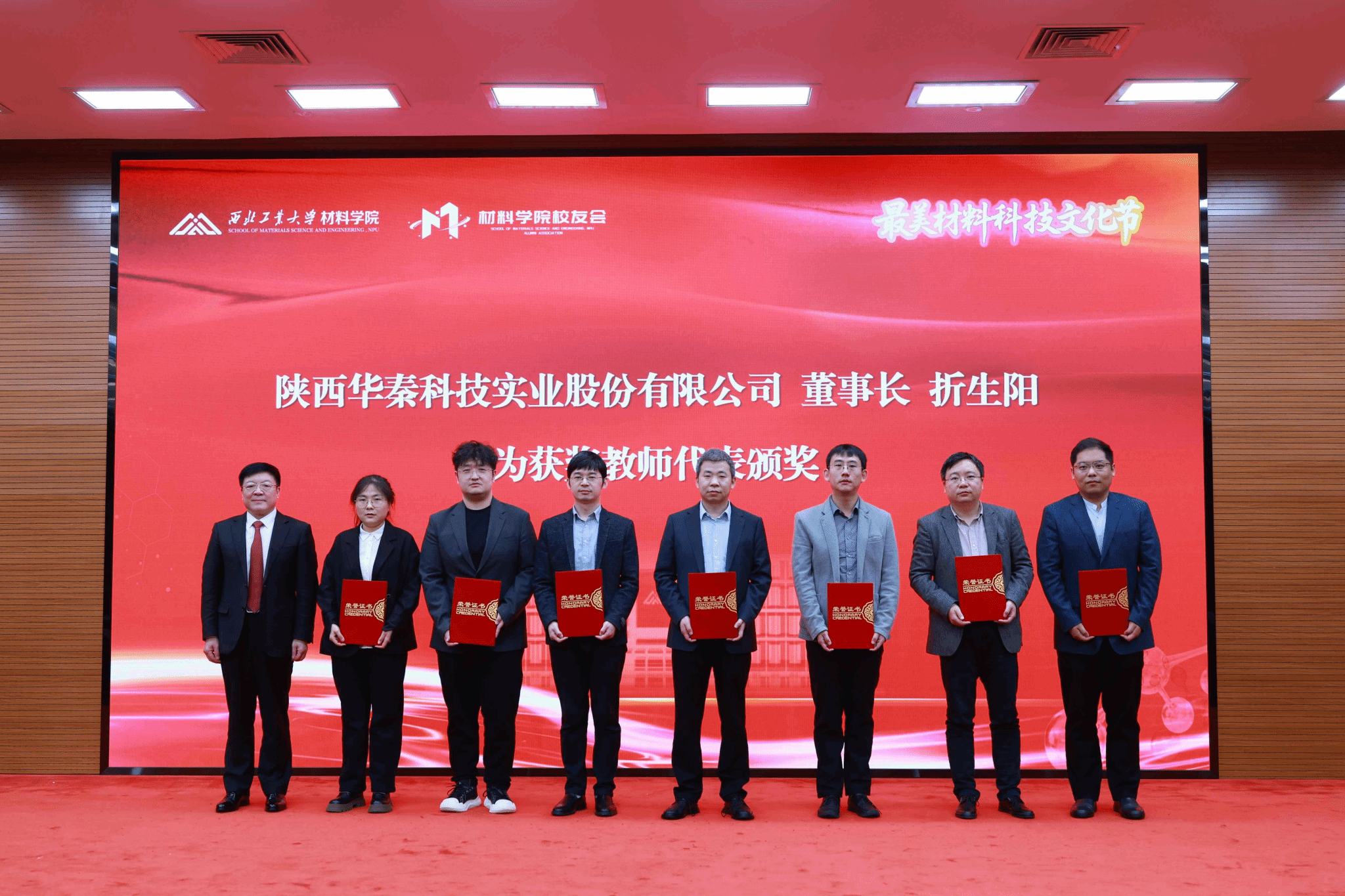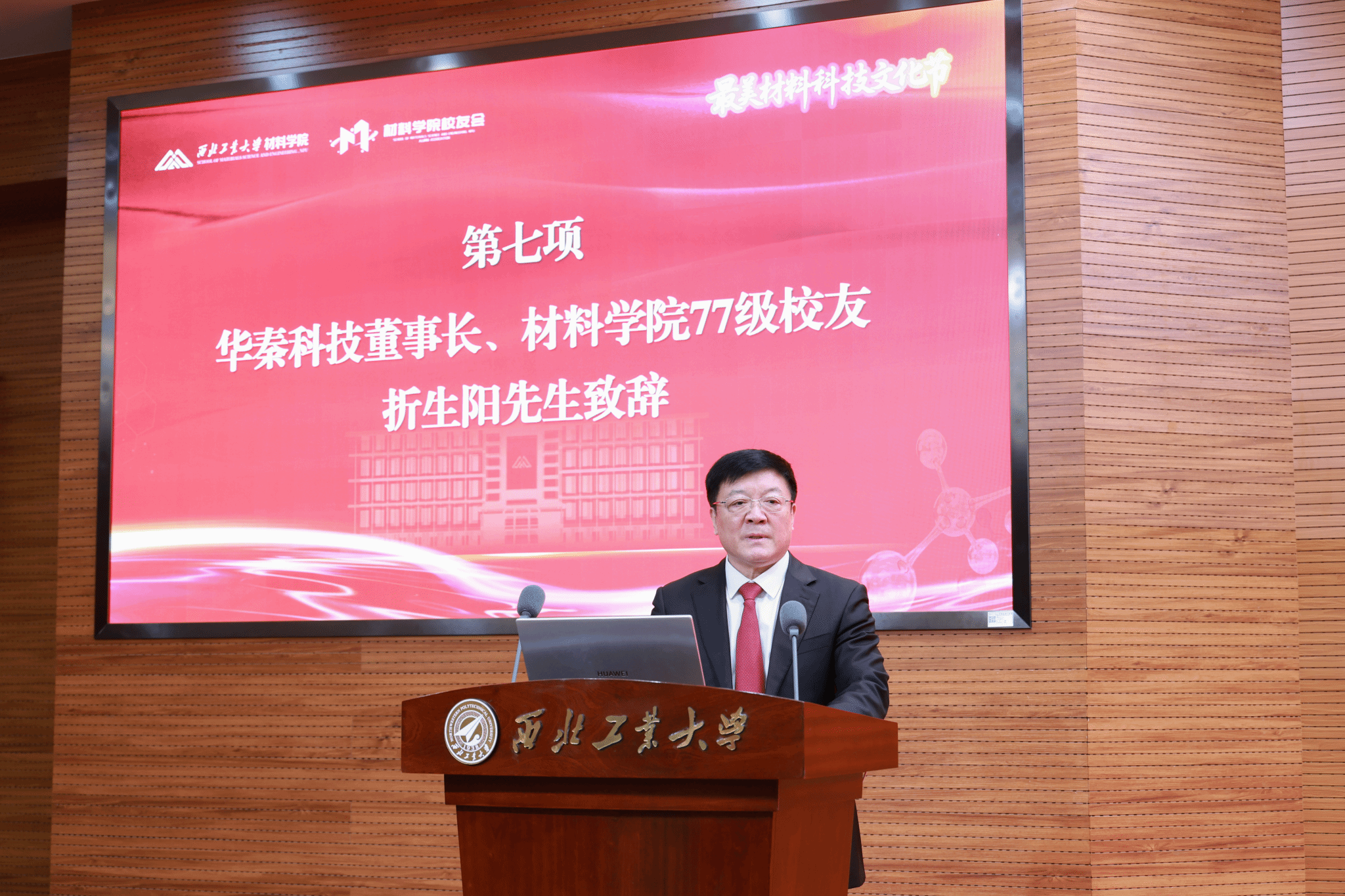 折生阳作为校友代表发言。他深情回顾了在母校的求学岁月,分享了创业历程,表达了对校院深切的感激之情和反哺之意。近日,折生阳暨华秦科技公司向学校捐赠1亿元,支持人才培养、科学研究和材料学科建设。