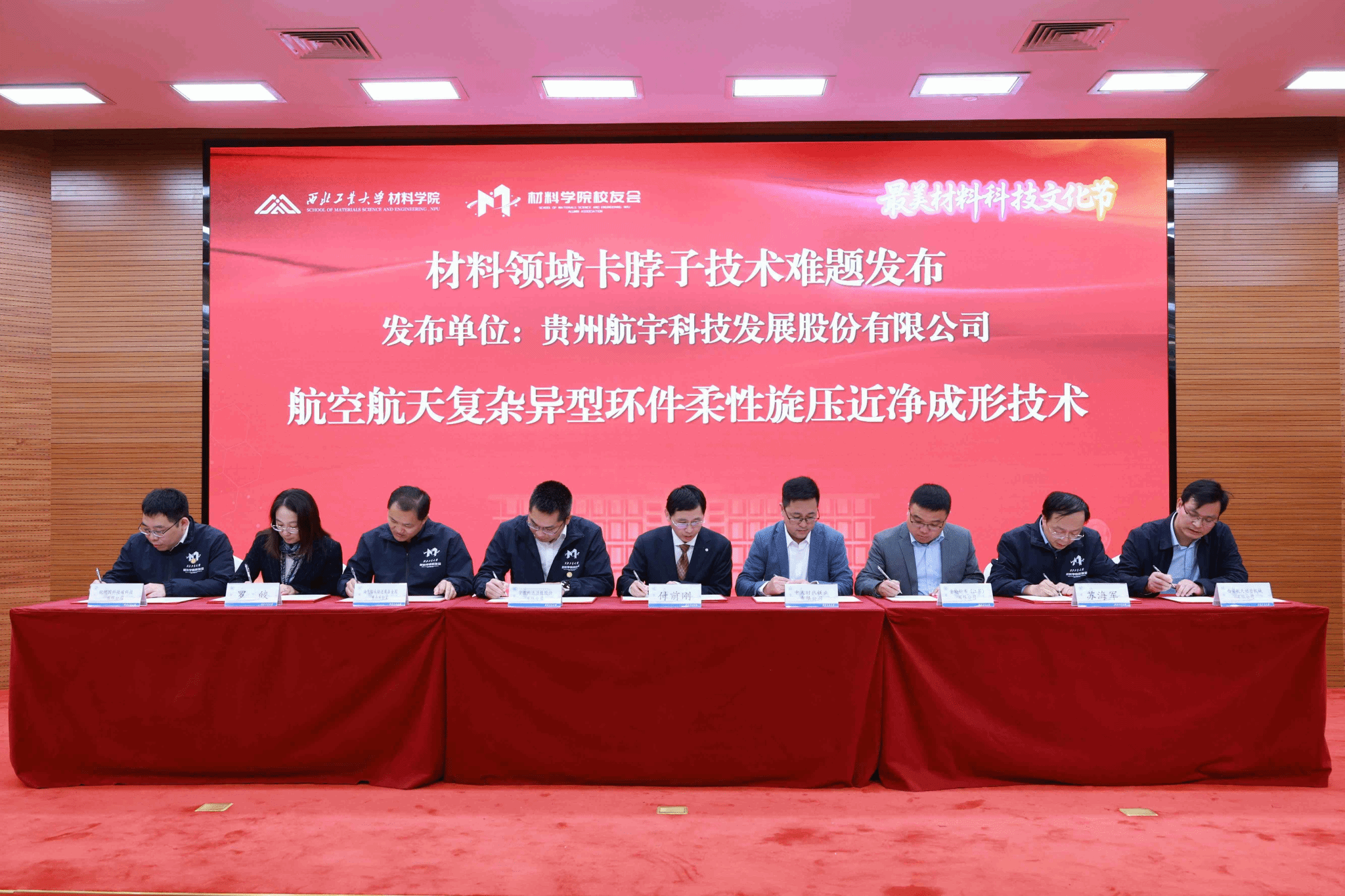 在校企合作环节,学院向中航重机、万航模锻、西安航天动力机械、贵州航宇等8家平台共建单位授牌,与油气钻采输送装备全国重点实验室、金轮针布等12家单位签署科研合作协议,与中航重机、中国工程物理研究院机械制造工艺研究所、中国核动力研究设计院等10家单位共同发布材料领域“卡脖子”技术难题,推动产学研深度融合发展。