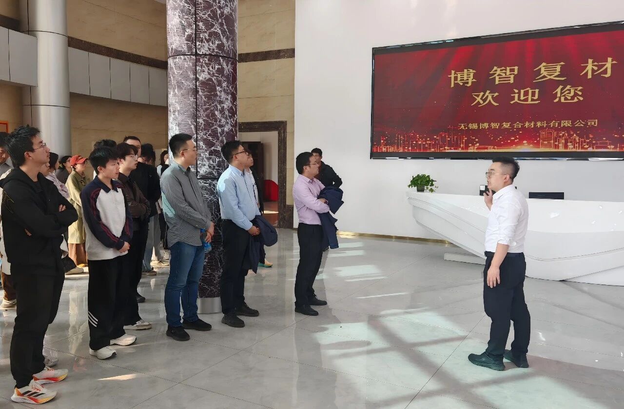 无锡博智公司为实践队打开了一扇通往碳纤维等先进复合材料的创新之门。在展厅中,同学们初步领略了航天用碳/碳复材喉衬等关键部件的高性能特性;随后走进生产一线,实地观摩从高温石墨化处理到预制体反应熔渗等关键工艺段,完整了解了先进复合材料构件的全流程制造链条。一系列超大型精密设备与高度自动化的产线布局,令人印象深刻。此次参访不仅深化了大家对复合材料制造工艺的理解,更看到了这类材料在推动未来装备升级与产业变革中的广阔前景。