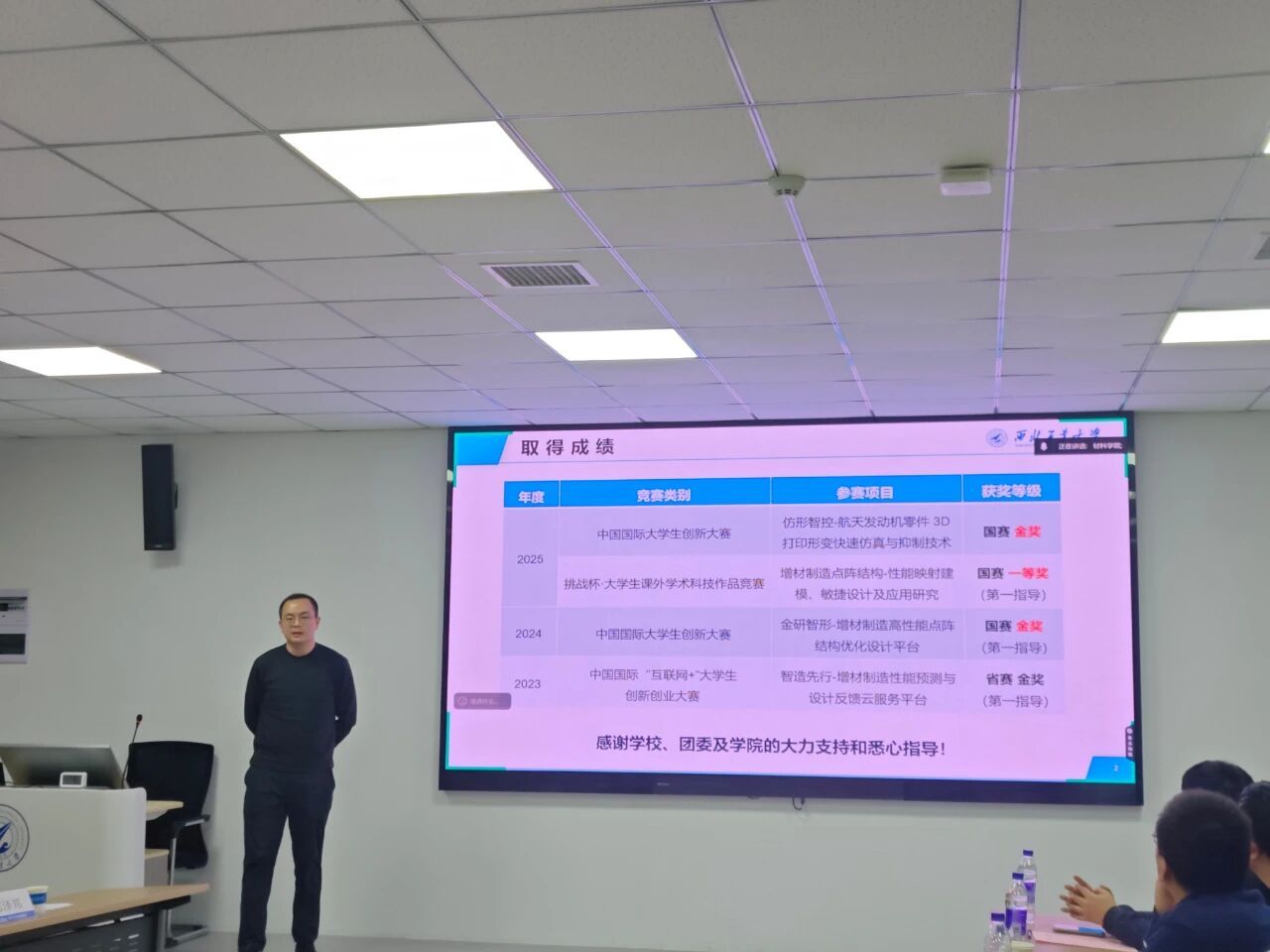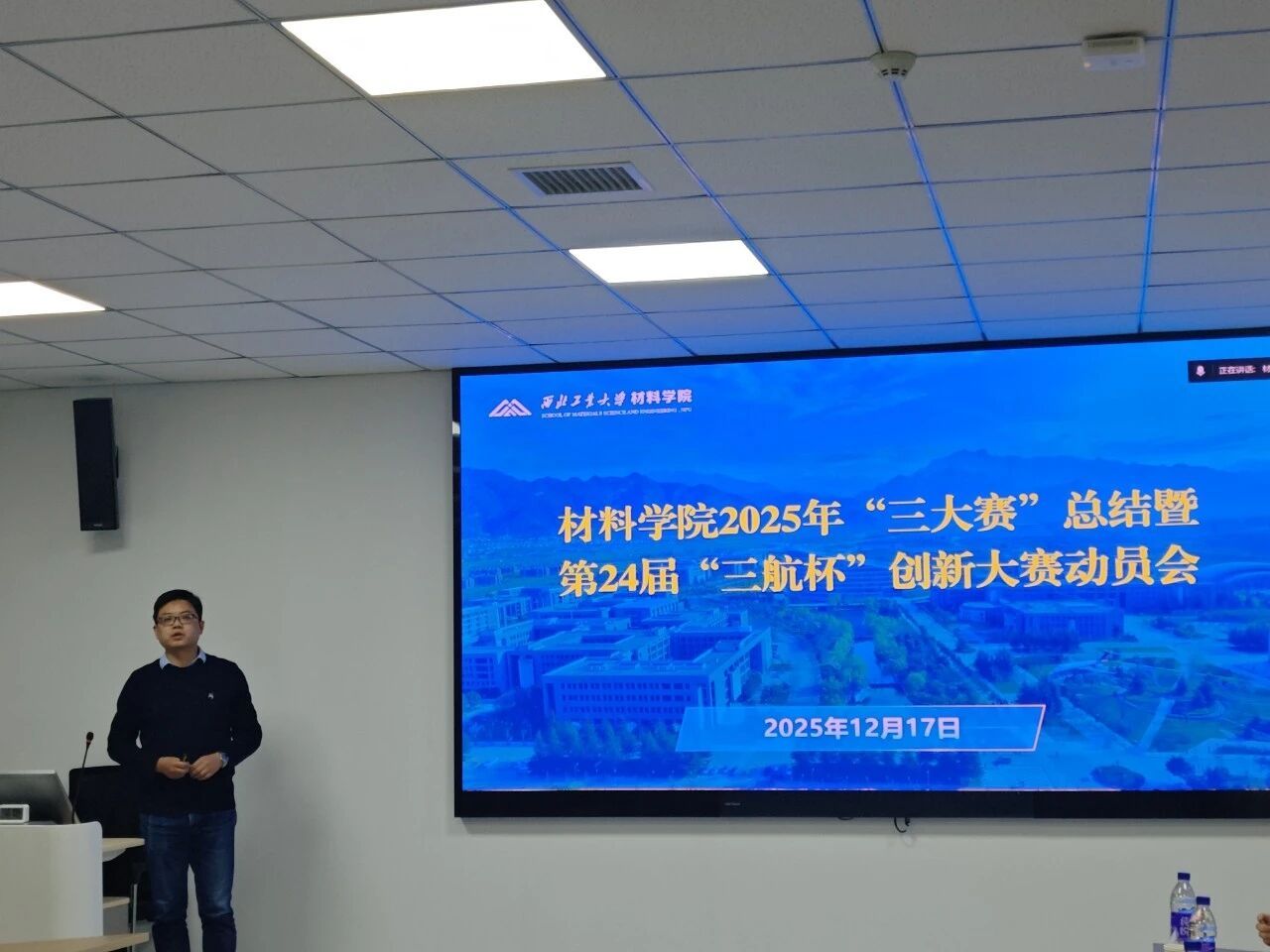 佘磊磊对学院在大赛中取得的优异成绩表示热烈祝贺,向辛勤付出的指导教师和同学们表示衷心感谢。他指出,“三大赛”对增强学生创新创业能力,提升“总师型”人才培养成效,促进科技创新和产业创新深度融合具有重要意义。学院要坚持目标导向,立足材料学科“大团队、大人才、大平台”优势,挖掘培育优秀项目和团队成员。要坚持勤奋备赛、科学备赛,充分运用获奖项目师生经验,积极发挥辐射带动作用,营造浓厚双创氛围。
